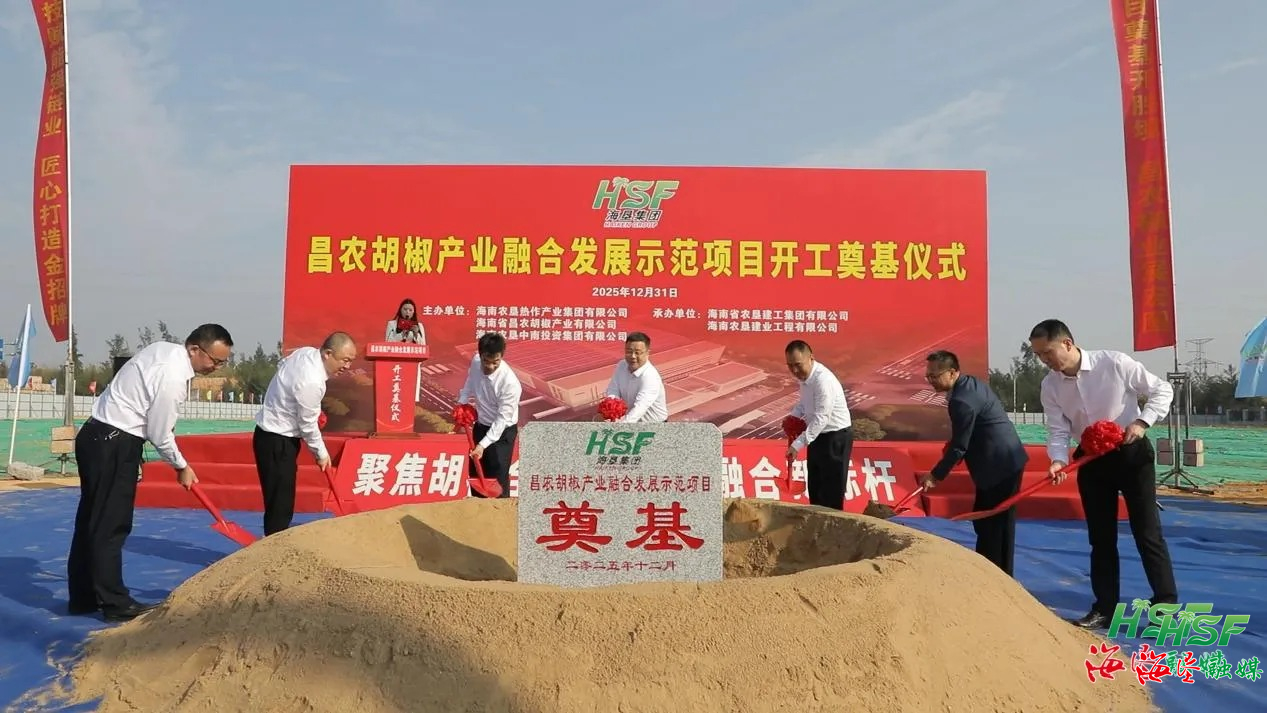 2025年12月31日,昌農(nóng)胡椒產(chǎn)業(yè)融合發(fā)展示范項(xiàng)目開工儀式在??谂e行。海墾集團(tuán)黨委書記、董事長(zhǎng)包洪文宣布項(xiàng)目開工。